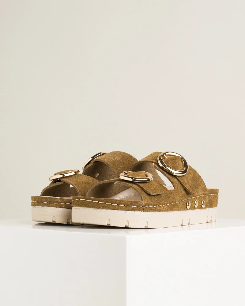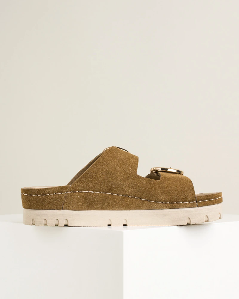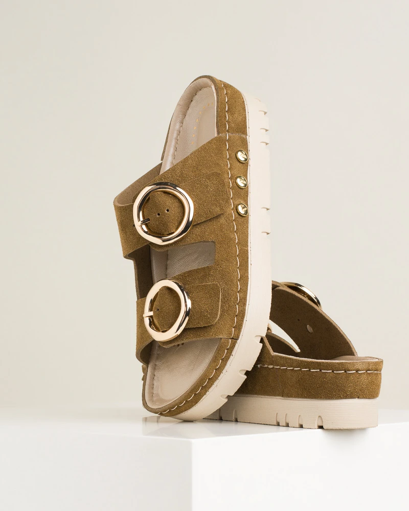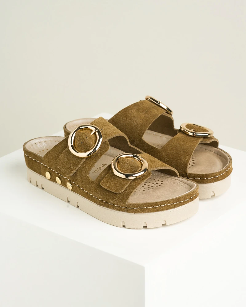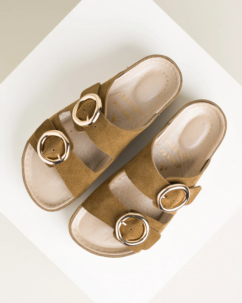 Dva podesiva kaiša omogućavaju savršeno prilagođavanje stopalu, dok zemljani tonovi čine ovaj model lako uklopivim uz različite stilove – od opuštenih do elegantnijih kombinacija. Posebno je pogodan za osobe sa osetljivim i bolnim stopalima, kojima je potrebna dodatna mekoća i podrška.