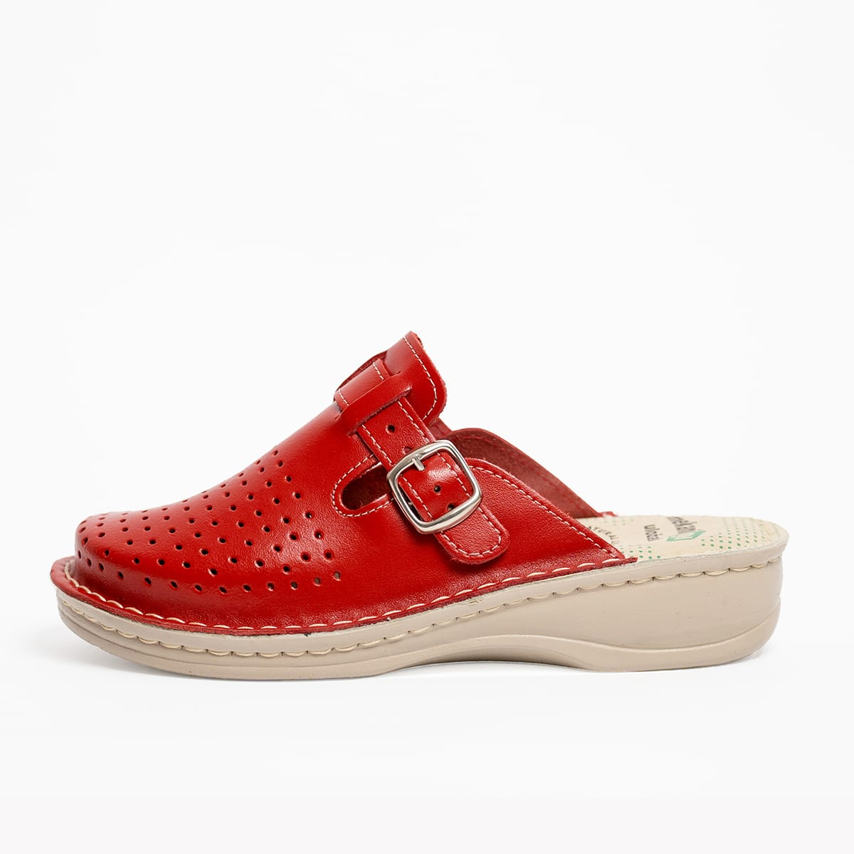 Ženska klompa izrađena od najfinije prirodne kože i kožnom tabanicom koja u sebi sadrži 8mm masažnog gela koji je idealan izbor za osobe koje imaju problem petnog trna.