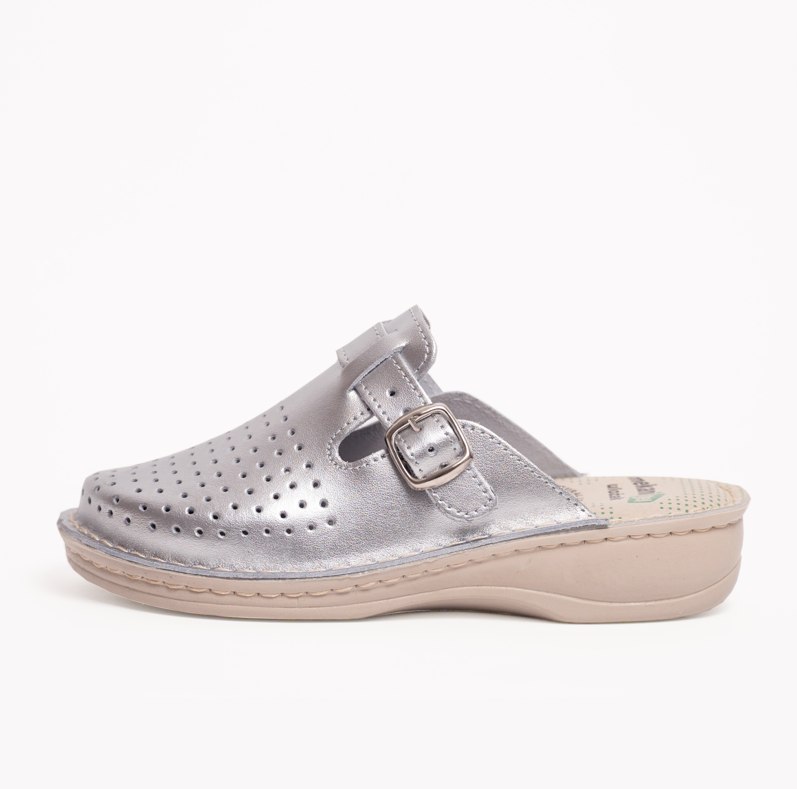 Ženska klompa izrađena od najfinije prirodne kože i kožnom tabanicom koja u sebi sadrži 8mm masažnog gela koji je idealan izbor za osobe koje imaju problem petnog trna.