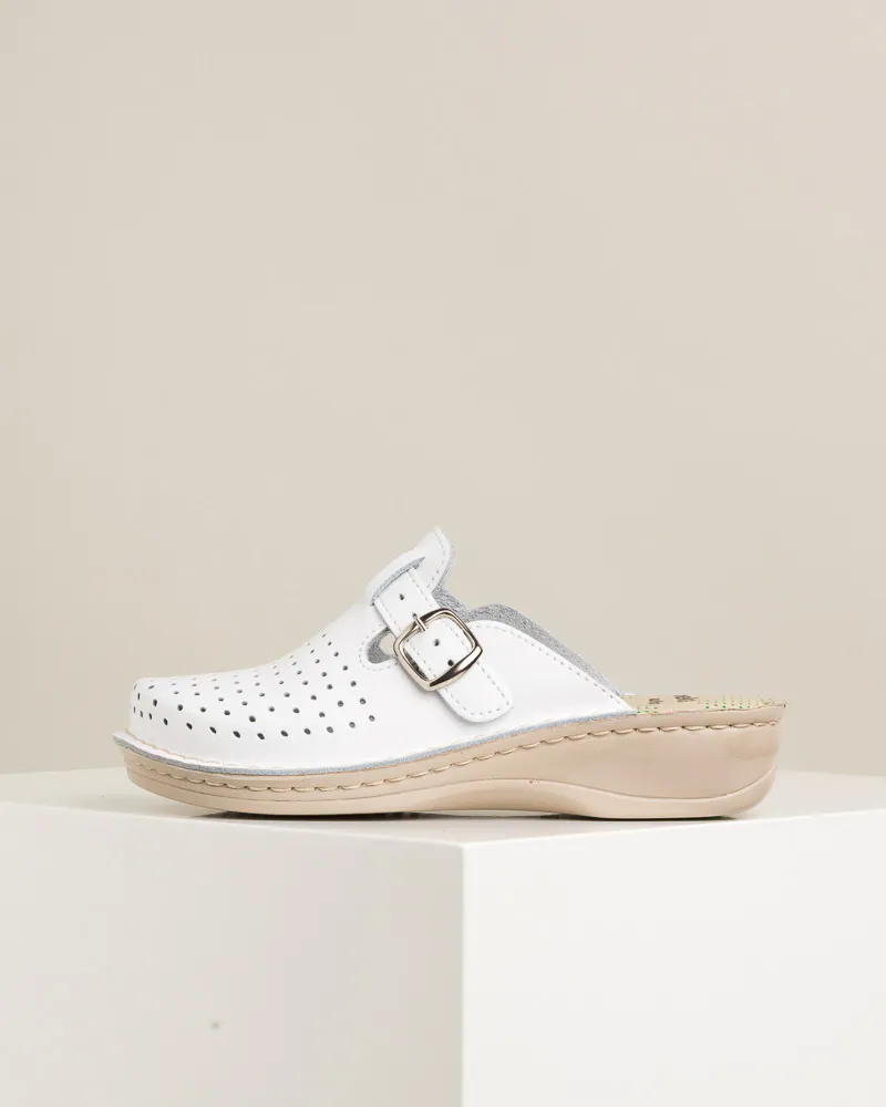 Ženska klompa izrađena od najfinije prirodne kože i kožnom tabanicom koja u sebi sadrži 8mm masažnog gela koji je idealan izbor za osobe koje imaju problem petnog trna.
