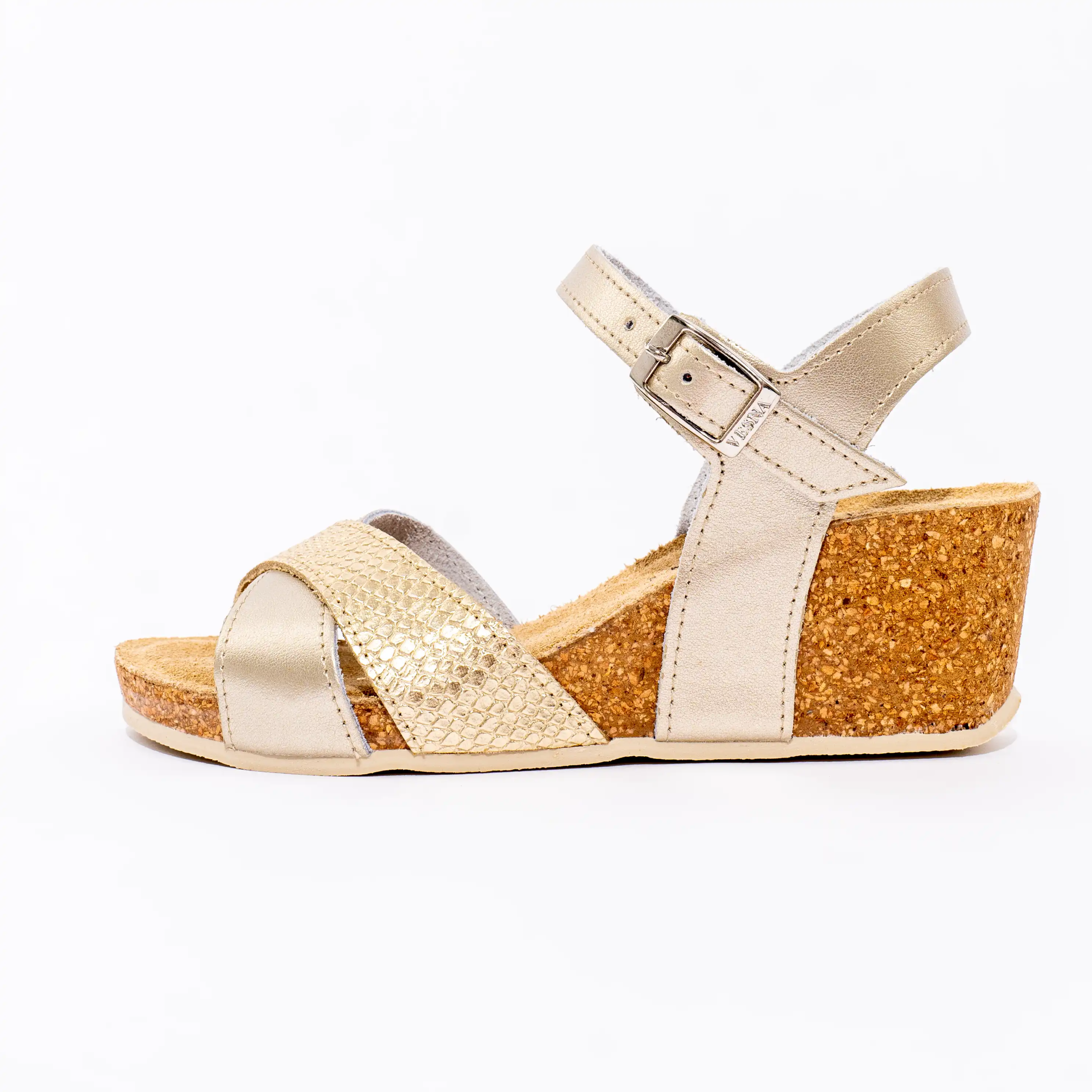 Anatomske sandale izrađene isključivo od prirodnih materijala, sa kožnim licem i đonom od prirodne plute, koji ih čine izdržljivim i ekološki prihvatljivim.