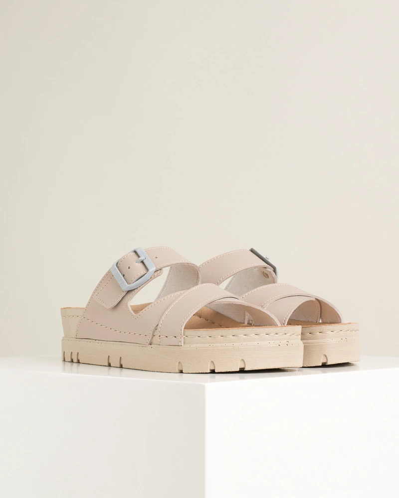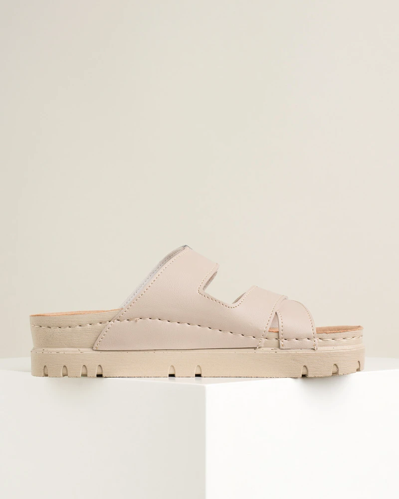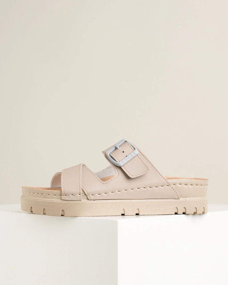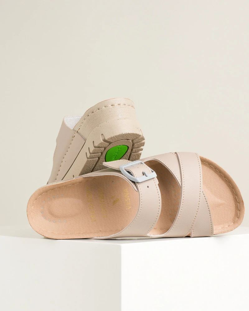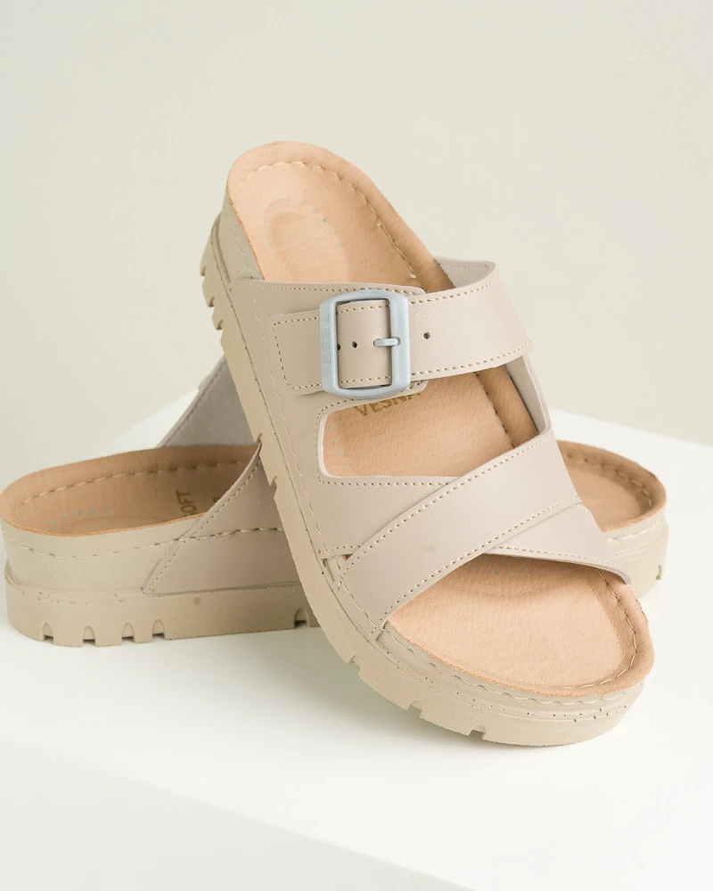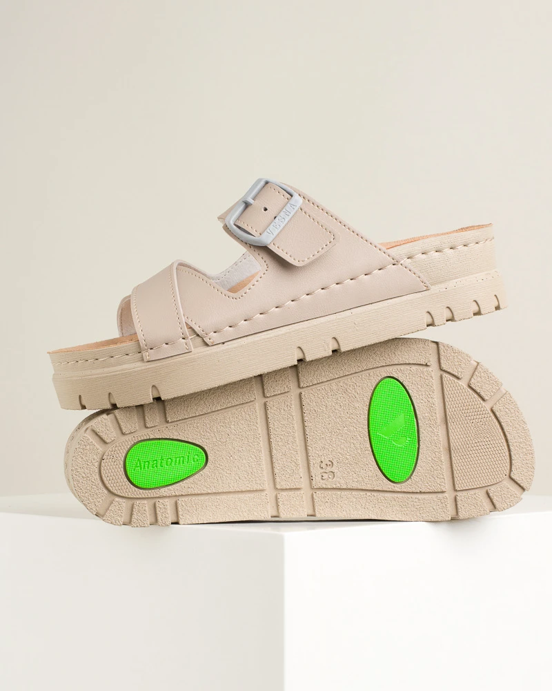 Vela 511 kombinuje stil i udobnost u modernim letnjim papučama. Mekani i fleksibilni đon čini hod laganim i prijatnim, dok povišena peta i stabilna platforma daju elegantan izgled bez odricanja od udobnosti. Lice i tabanica od veganske kože pružaju , dok antiklizne osobine đona obezbeđuju sigurnost pri svakom koraku. Idealne za svakodnevne letnje kombinacije.