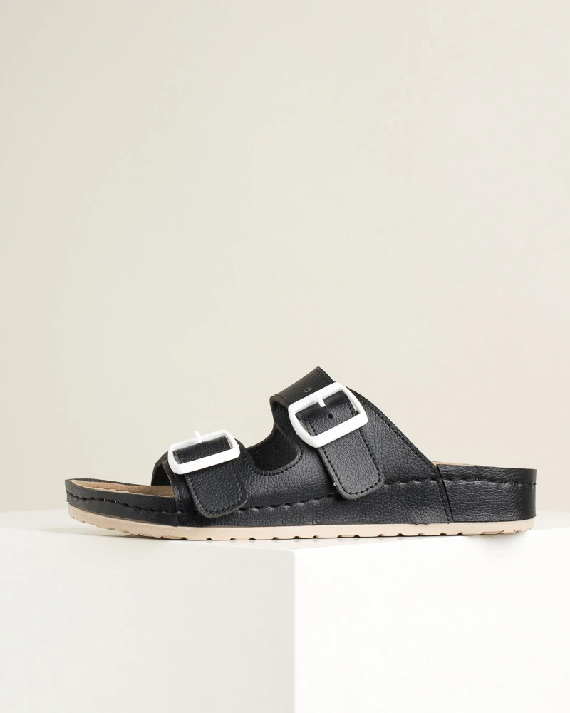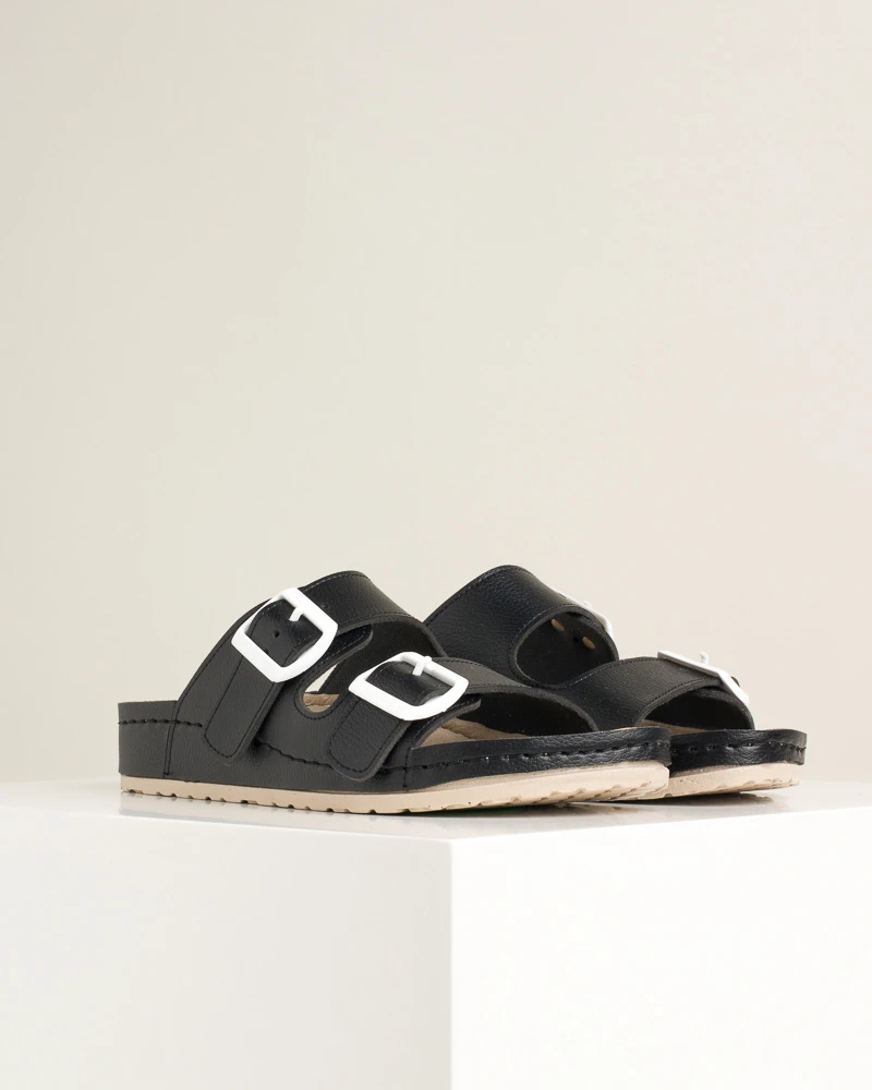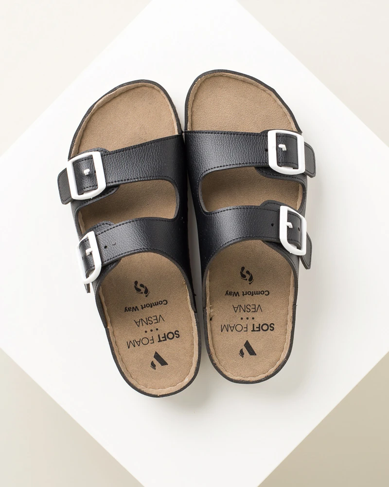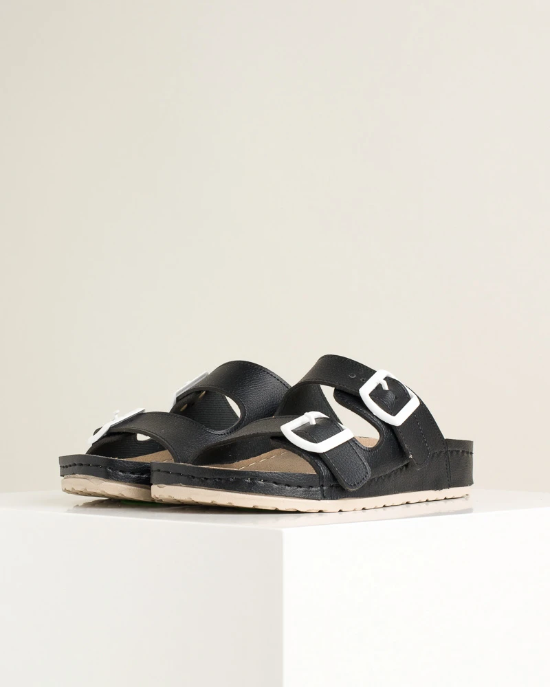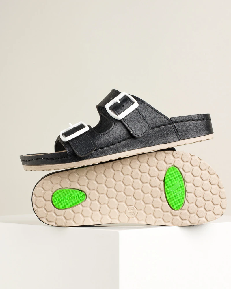 Ove šarene letnje papuče od veganske kože kombinuju stil i udobnost – imaju dva kaiša sa kopčama za idealno podešavanje širine, mekano gaziste i tabanicu od veganske kože, dok PU đon sa antikliznom površinom omogućava sigurno koračanje tokom celog dana.