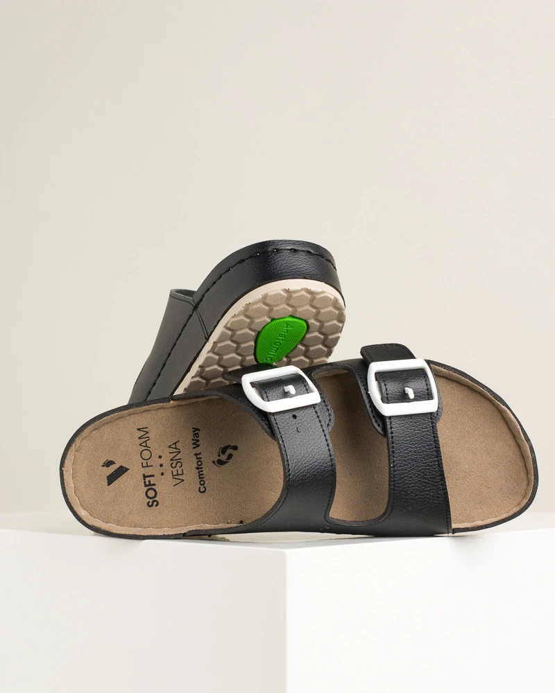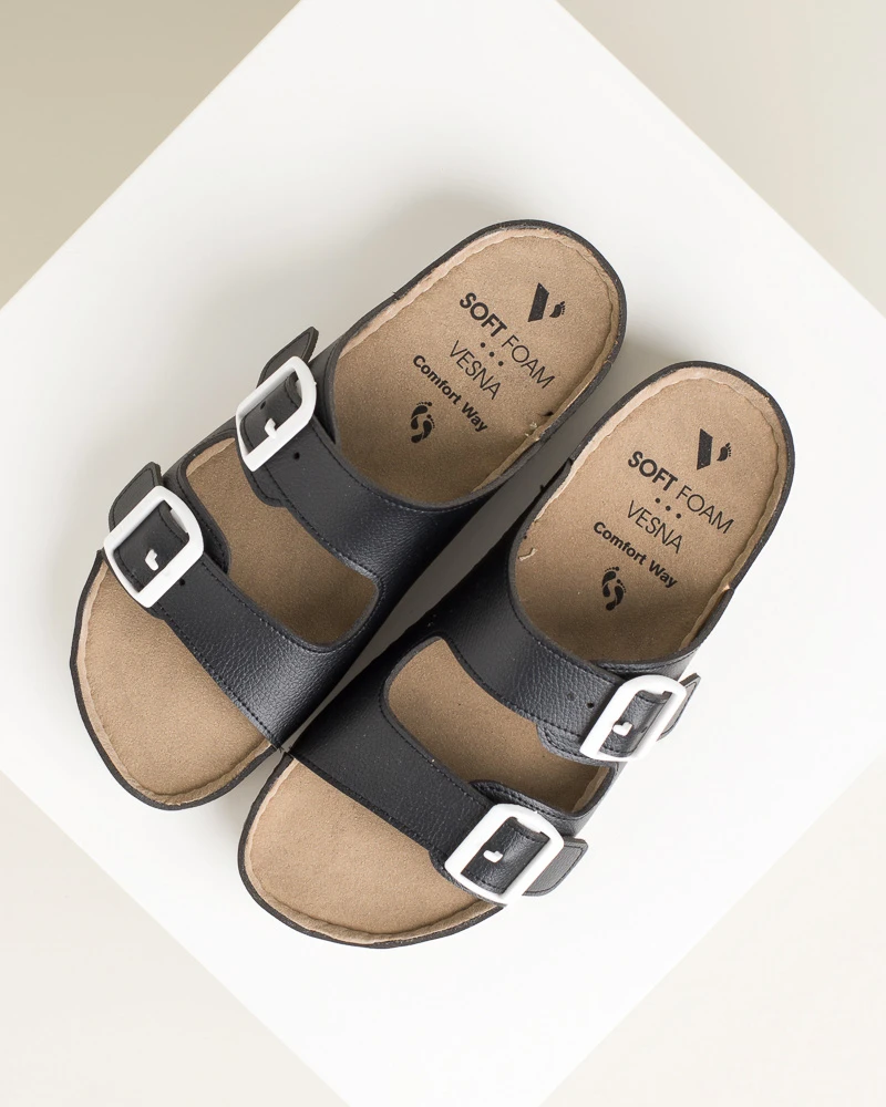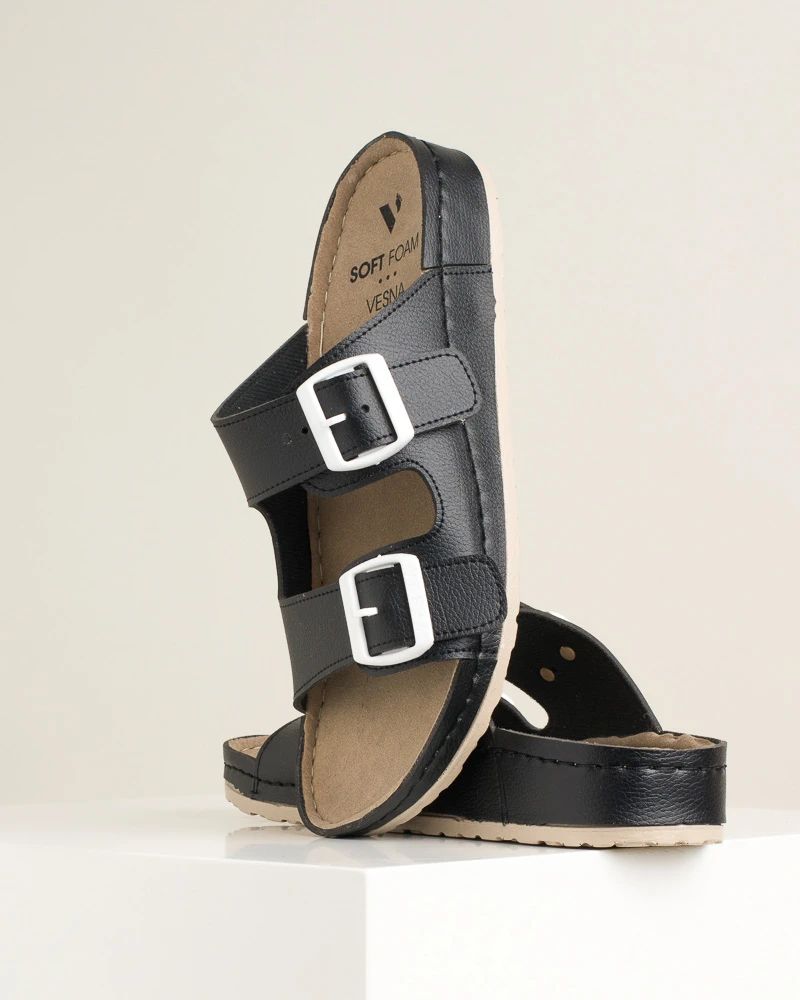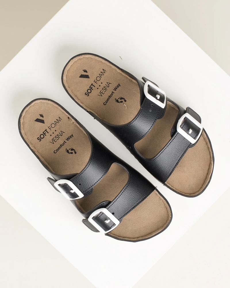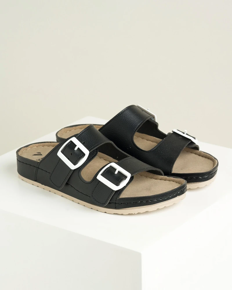 Ove šarene letnje papuče od veganske kože kombinuju stil i udobnost – imaju dva kaiša sa kopčama za idealno podešavanje širine, mekano gaziste i tabanicu od veganske kože, dok PU đon sa antikliznom površinom omogućava sigurno koračanje tokom celog dana.